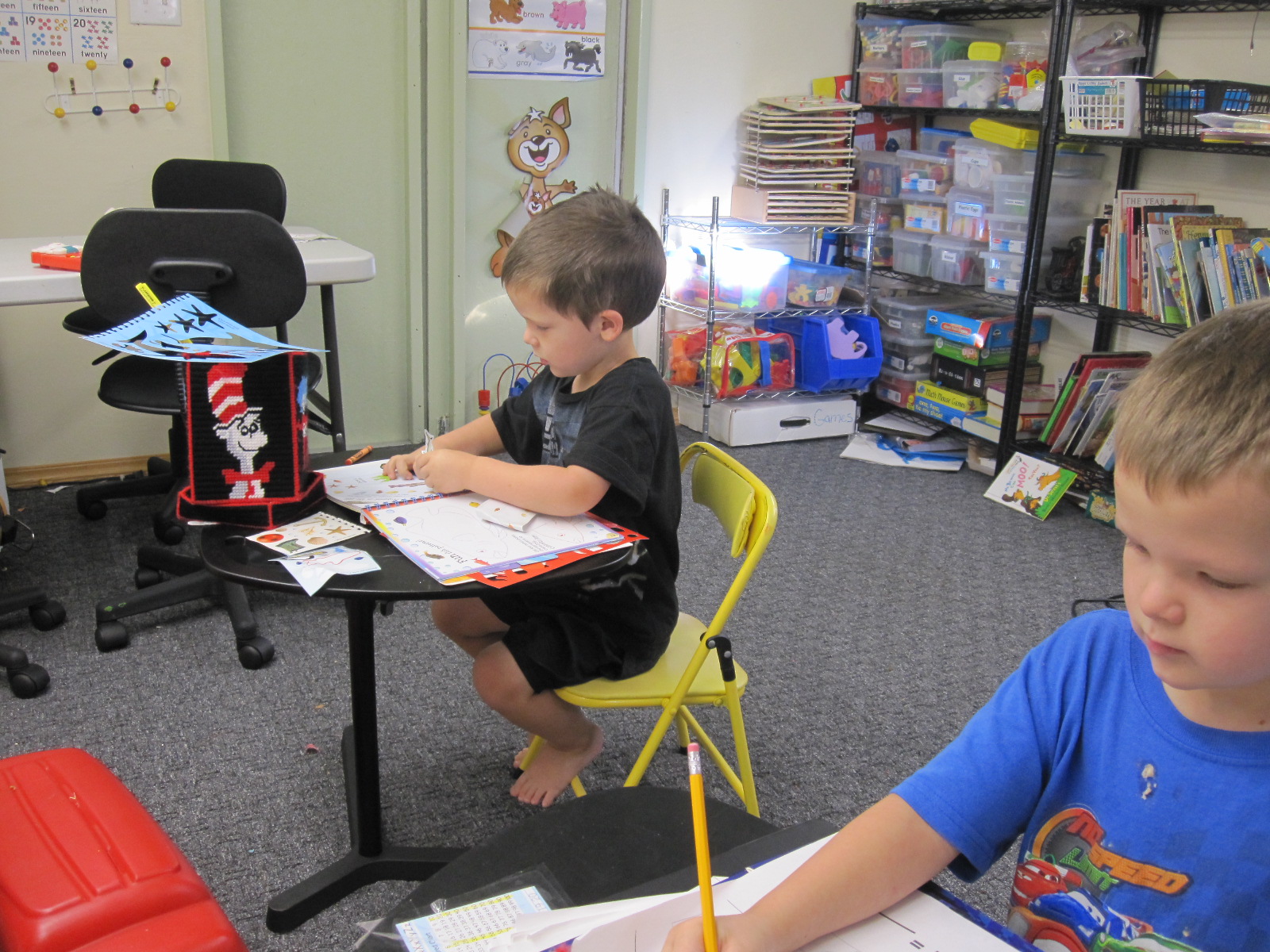 We are getting into a really good routine. Seth has learned that when we get in the classroom he is to get his daily folder out and work on it. In that folder I have his number of the day sheet, calendar page, place value chart, weather graph, tally mark sheet, and measuring page (he is drawing lines that the length of the number of the day in cm). He has really in the past week or two gotten very independent with this folder, which is what I was trying to accomplish!