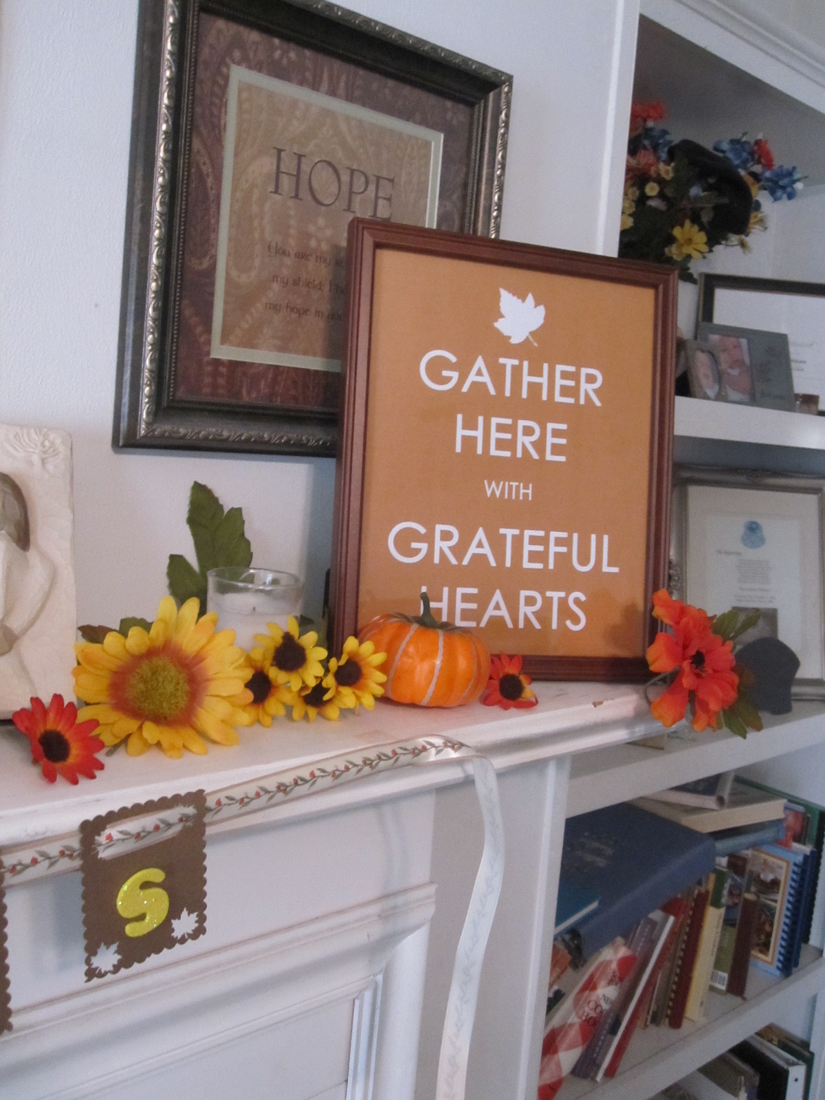 When I was putting up the garland Seth asked what it said and I said "Give Thanks". He said "we should put one below it that says Love God." LOVE that kid!!! He melts my heart at times!