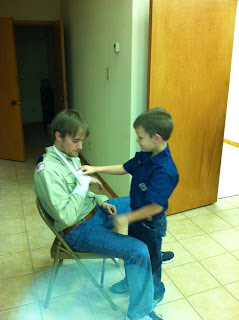 I got a couple of cute pictures from Cub Scouts Monday night!  Seth and Caleb were working on their exercising! :-)